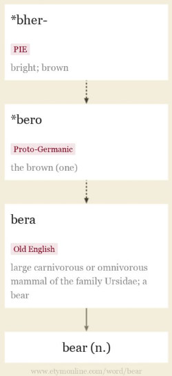 Harper, Douglas. “Etymology of bear.” Online Etymology Dictionary, https://www.etymonline.com/word/bear. Accessed 27 January, 2025.